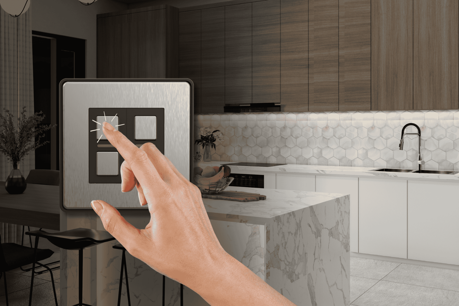 Our Wire-Free Scene Selector mounts anywhere, offering the ability to trigger lighting scenes and routines with simple button presses.