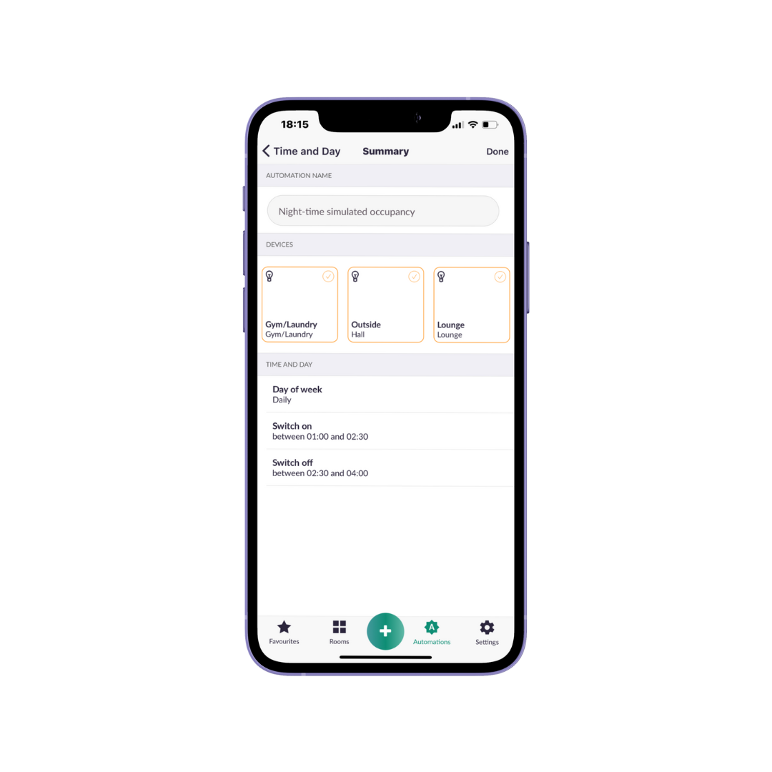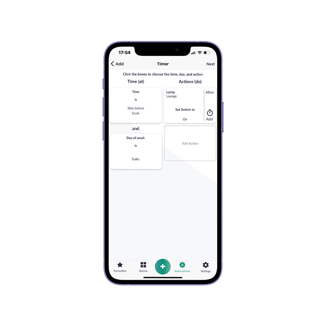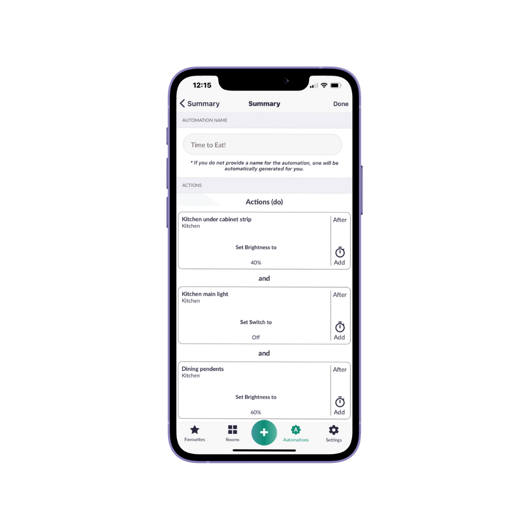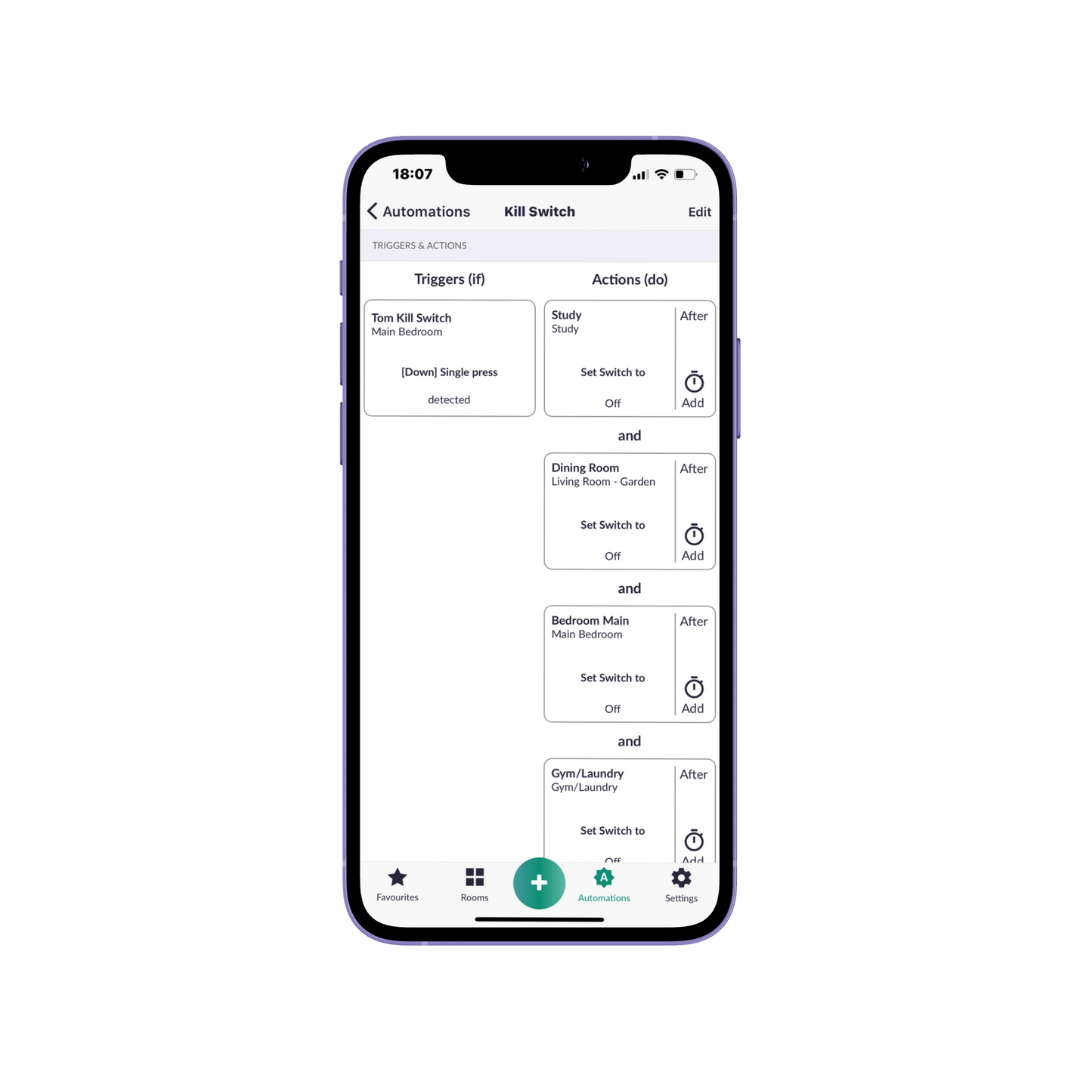 Trigger multiple actions with a single tile on the app. Whether it's setting your favourite mood lighting or turning off entire sections of the house, "Do" puts powerful control at your fingertips.
