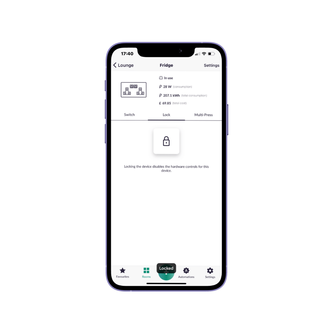 Securely lock devices OFF, like TVs and game consoles, or keep essential devices, such as your Wi-Fi or fridge, locked ON to ensure continuous operation and control.